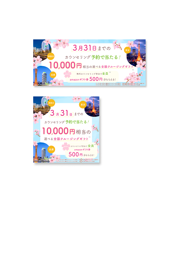 バナー作成 2025年7月29日 Last updated : 2025年7月29日 webcoachr 【製作時間】3時間/1枚【使用ソフト】Photoshop・illustrator【担当業務】デザイン【意識した亊】春らしい季節感が伝わるデザインにしました。